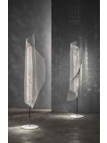 The Arturo Alvarez Virginia VG03B is a floor lamp with a lamp shade in painted stainless steel mesh. The lamp shade has a diameter of 35 cm and a height of 30 cm. It is available in the colours weiß und grau angeboten. Auf Anfrage ist die Leuchte auch in taupe und beige erhältlich. The lamp has a total height of 153 cm. It emits its light through the lamp shade into the room and directly downwards. The Virginia VG03B has an on/off switch on the transparent supply line. Its E27 socket can be operated with LED retrofits.