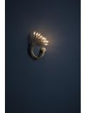 Die Catellani & Smith Luna W Wandleuchte hat eine Reflektorscheibe mit einem Durchmesser von 30 cm. Der Leuchtenstab aus Kupfer wirft sein Licht auf die Metallscheibe, von wo es in den Raum reflektiert wird. Diese Reflektorscheibe wird in versilbert, vergoldet oder Kupfer angeboten. Der Kupfer-Leuchtenstab ist an einem flexibel einstellbaren Leuchtenarm aus Messing befestigt. Die Luna W Wandleuchte wird von zwei austauschbaren LEDs mit einer Farbtemperatur von 2.700 Kelvin extra warmweiß betrieben.