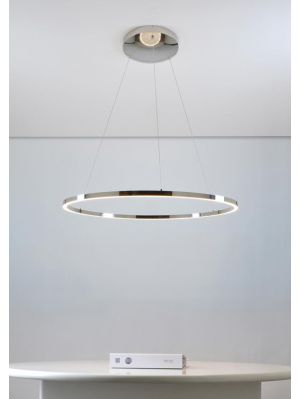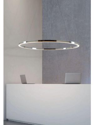 Die VS Manufaktur One Leuchtenfamilie enthält zwei Pendelleuchten. Die One 80 ist eine Pendelleuchte mit einem ringförmigen Leuchtenkörper. Dieser Körper hat einen Durchmesser von 80 cm bei einer Höhe von 2 cm. Die integrierte LED gibt das Licht gleichzeitig nach oben und unten ab. Die Gesamthöhe der Leuchte kann zwischen 100 bis 200 cm eingestellt werden. Auf Anfrage ist die Leuchte auch mit anderen Abhängungshöhen erhältlich. Diese Leuchte gibt es in fünf Oberflächen: Messing vernickelt matt gebürstet, matt gebürstet lackiert, poliert lackiert, vernickelt sowie verchromt. Die integrierte LED verfügt über einen Diffusor sowie eine Leistung von 43 Watt bei einer Farbtemperatur von 2.700 Kelvin extra warmweiß. Die Leuchte kann bauseitig gedimmt werden. Die One 58 ist 2 cm hoch und verfügt über einen Durchmesser von 58 cm. Auch diese Leuchte gibt ihr Licht sowohl nach oben als auch nach unten ab.