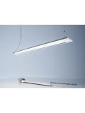 Die Ingo Maurer YAYAHO Element 5 Leuchte hängt an zwei Seilen mit Gegengewichten. Diese Seile werden über die Spannseile des Lichtsystems YAYAHO gehängt. Das Element 5 ist durch die beiden Seile mit Gegengewichten auf den Seilen des Lichtsystems horizontal beweglich sowie in seiner Höhe verstellbar.