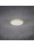 The Escale Blade 44 cm is a wall and ceiling lamp with a diameter of 44 cm. It has a depth of 3.5 cm. The light from this lamp is emitted to the wall or ceiling behind it, from where it is reflected and forms a halo effect around the lamp. This ceiling and wall lamp is available in the surfaces white matt, black matt, silver matt anodised, concrete look, gold leaf, taupe anodised and anthracite. An LED with a colour temperature of 2,700 Kelvin extra warm white is included.