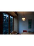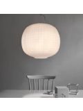 The Foscarini Chouchin Bianco 2 LED is a pendant lamp with a lamp shade made of mouth-blown glass. The lamp shade is completely white. It has a diameter of 22 cm and a height of 43 cm. The light is emitted from the lamp laterally through the lamp shade into the room and directly downwards. The Chouchin Bianco 2 LED is operated with a powerful LED. The LED pendant lamp is available as non-dimmable or DALI dimmable. The pendant lamp can be individually set in total height during installation.
