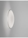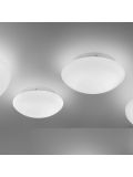 The Vistosi Bianca PP can be used as a wall or ceiling lamp. It has a lamp shade made of white crystal glass. This lamp is available in two sizes: with a diameter of 30 cm or 38 cm. The smaller version is 12 cm high or deep, the larger version 15 cm. The wall and ceiling lamp radiates its light over the entire surface of the shade. The Bianca PP operates with E27 halogen lamps, LED retrofits or fluorescent lamps.