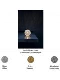 The Catellani & Smith Sweet Light T is a table lamp. It consists of a sphere, which is available in different surfaces. All versions are made of aluminum wire, which is available in silver colour, brass colour or untreated natural aluminum. A low voltage LED illuminates from inside the table lamp. By touching the lamp itself for a longer time the light is dimmed.