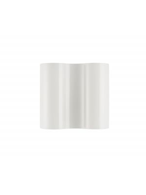 The Foscarini Double 07 was already designed in the year 1996 by Valerio Bottin. It is a wall lamp with a curved lamp body as a diffuser. This lamp body is offered in ivory or white. The light is emitted into the room as well as directly downwards and indirectly upwards. Two halogen high-voltage lamps with up to 77 watts at maximum can be used as light sources. Instead, also two LED retrofit or two compact fluorescent lamps with a maximum power of 20 watts each are suitable as illuminants. The dimensions for the Double 07 are 24 cm in height, 26 cm in width and 13 cm in depth. This makes this wall lamp a model that fits into every room and provides for a pleasantly soft lighting. The diffuser of the lamp is made of mouth-blown glass using the blowing technique, a-fermo, in which the glass is not rotated in the mold. The surface of the diffuser is shiny so that the light generates reflections on the shade. Socket and wall holder are made of metal powder coated with epoxy powder.