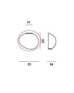 The Foscarini Gregg Parete Media Semi 1 has a mouth-blown, acid-etched glass. The white satinised glass is curved to the right and its shape is reminiscent of half a Gregg Media lamp. Through the glass the light is emitted glare-free and evenly in all directions. The Gregg Parete Media Semi 1 has a width of 31 cm and a height of 25 cm. Its depth is 14 cm. The painted metal wall bracket is available in white, gold and graphite versions. The wall lamp has an E27 socket that can be operated with halogen lamps, LED retrofits or compact fluorescent lamps. The Gregg Parete Media Semi 1 is also offered as a MyLight lamp, which can be dimmed with the Casambi App via Bluetooth using a smartphone or tablet. In addition, there is also available from this series the Semi 2 with a glass curved to the left and the larger Grande wall lamp.
