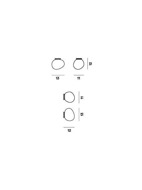 The Foscarini Soffitto Parete Piccola replacement glass is 11 cm wide and 13 cm long. It is made of blown satin glass.