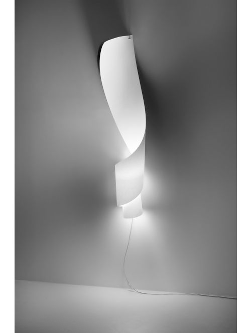 The Ingo Maurer Oops is a wall lamp with a light source in the lower part. The light source illuminates the upper part of the spiral-shaped lamp body, from where the light is reflected into the room. This creates numerous light and shadow effects on the lamp and the wall behind it. At the same time, the light radiates diffusely into the room through the transparent light body itself. The lamp body of the Oops is made of high-quality, fine paper from the handmade paper manufacturer Gmund and conceals both the wall bracket and the light source. The 200 cm long cable is supplied with plug and dimmer switch. Both halogen lamps and LED retrofit lamps are suitable as light sources.