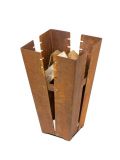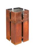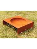 The Keilbach fireplace Fluxus can stand like an art object the whole year in the garden. The 3 mm thick sheet steel is dark and bright in its original condition. This corrodes in the course of time and the fireplace gets its individual rust-coloured patina. In addition, the soot leaves interesting contrasts on the corroding material. Fluxus can easily be left outdoors all year round. However, the oxidized material can leave traces on the surface.