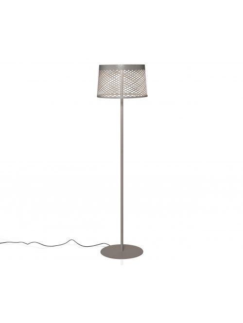 The Foscarini Twiggy Grid Outdoor Lettura is a 160 cm high floor lamp for outdoor use. It emits its light mainly directly downwards. Its lamp shade has a diameter of 46 cm and a height of 29 cm. The Twiggy Grid Outdoor Lettura is available in crimson and greige (a mixture of grey and beige). Depending on the connection options, the floor lamp has a protection class of IP44 (with plug connected) or IP65 (with clamp). With the IP44 protection class, it is protected against solid foreign bodies with a diameter of at least 1 mm and against splash water on all sides. With IP65, the lamp is dust-tight and protected against water jets from any angle.