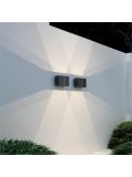 The Loom Design Saga wall lamp emits its light simultaneously upwards and downwards. The optical lenses focus the light in both directions and emit it onto the wall in contoured cones of light. Above each lens sits a clear, spherical glass. An internal reflector additionally prevents glare. The light is emitted upwards and downwards with a beam angle of 80 degrees each. The Saga has a width of 10.5 cm and a depth of 12 cm. The height is also 12 cm. An LED with a colour temperature of 2,700 Kelvin extra warm white is integrated as illuminant. The wall lamp is offered in the surfaces white, black and corten. With the IP65 protection class, this Loom Design lamp is ideal as an outdoor lamp, as it is dustproof and protected against water jets from any angle.